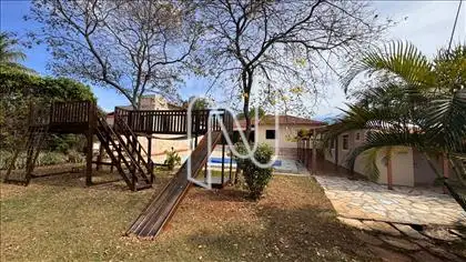 Na parte externa, a casa oferece piscina, área de lazer infantil equipada com brinquedos de madeira, e um belo terreno com área privativa de 733,33 m², somado a 400 m² de área verde, proporcionando contato com a natureza e espaço de sobra para a família.