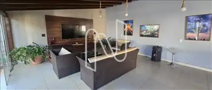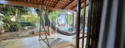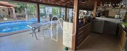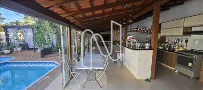 ?O espaço exterior é ideal para o lazer e conta com uma piscina, hidromassagem, espaço gourmet e um banheiro de apoio. O jardim bem cuidado proporciona um ambiente agradável e tranquilo. Há também um quarto de hóspedes para maior comodidade de visitas.