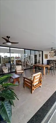 Sala de estar e jantar integradas com pé direito duplo e iluminção natural, apoiadas por um lindo lavabo com acabamento de primeira linha. Cozinha completa com coifa e fogão de indução. A área de serviço possui armários e despensa planejada. A sala de tv é separada da área íntima para proporcionar conforto e privacidade;