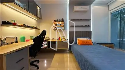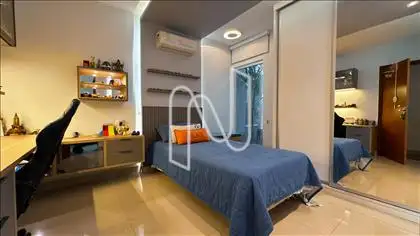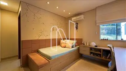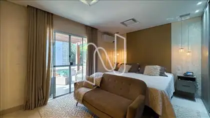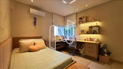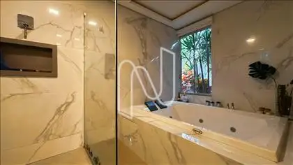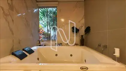 - 5 suítes com armários planejados, sendo uma master com closet espaçoso e banheira de hidromassagem; todos com ar-condicionado.