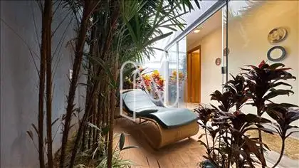 - Espaço gourmet integrado com a cozinha com churrasqueira e piscina aquecida com hidromassagem, sauna com banheiro externo, pergolado externo ideal para momentos de relaxamento e lazer;